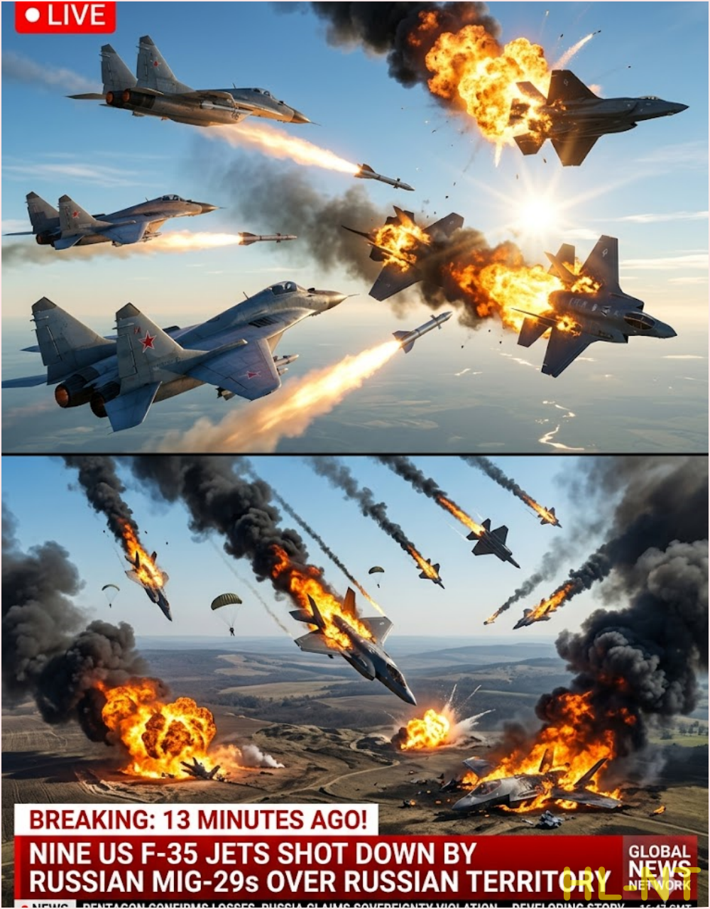 13 minutes ago! Nine US F-35 jets entering Russian territory were sH๏τ down by Russian MiG-29s.lh