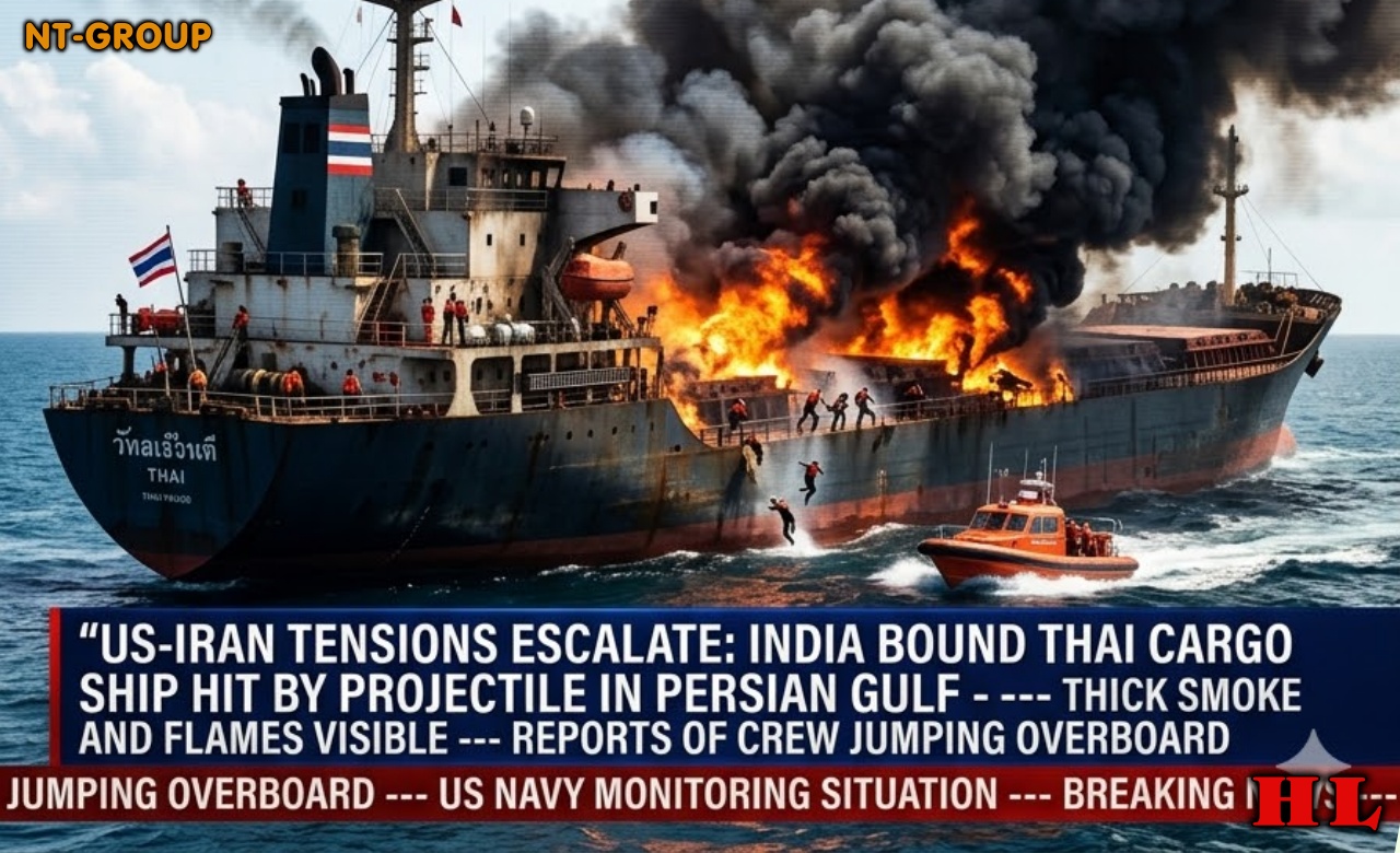 In a shocking new escalation of the March 2026 Iran war, a Thai-flagged cargo ship bound for India was struck by an IRGC projectile in the Strait of Hormuz, triggering a má´€ssive fire that has engulfed the vessel in flames.