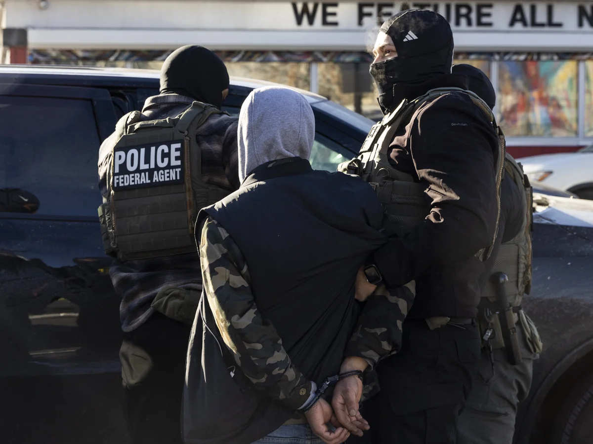58 agents from FBI, ICE, and HSI emerge from unmarked SUVs.