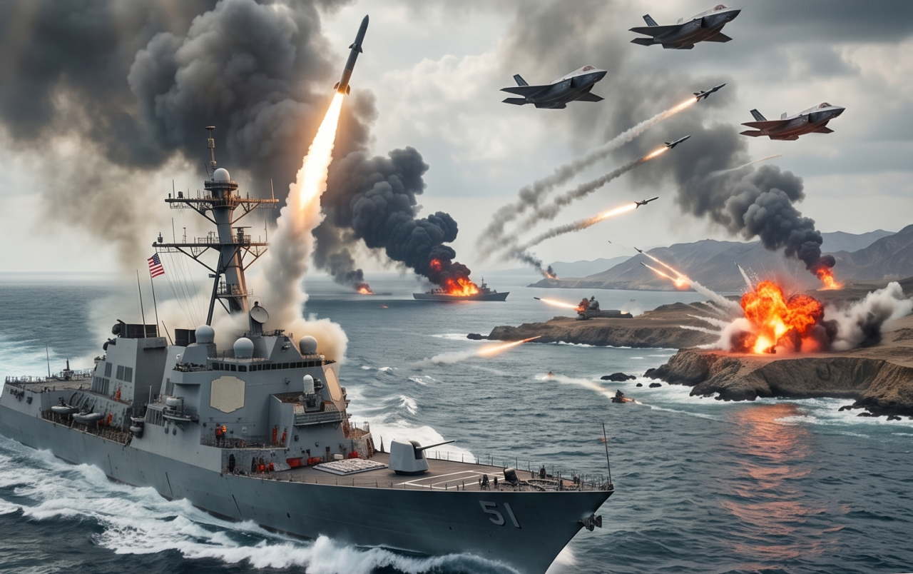 Pentagon sources confirm the operation began in the last hour with coordinated strikes by F-35 stealth fighters, B-2 Spirit bombers, and U.S. Navy surface groups. Several Iranian coastal missile sites and IRGC command posts that were attempting to restrict shipping have already been destroyed. Marine and Navy special forces units have also begun clearing Iranian fast-attack boats and minefields that were hindering commercial tanker movement.