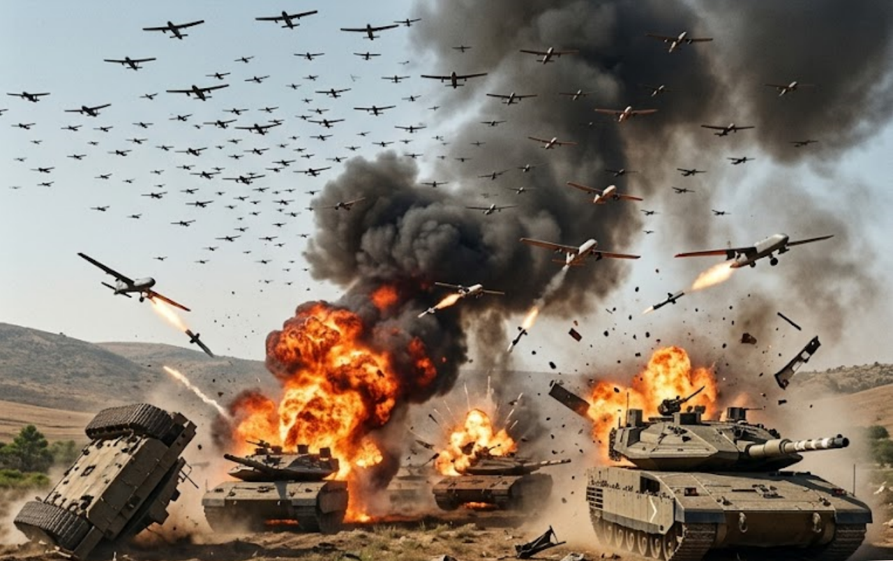 In a stunning display of Iranian drone warfare, the regime has launched a mᴀssive swarm of 800 drones in a surprise ᴀssault that has reportedly destroyed or disabled dozens of IDF tanks in southern Lebanon and northern Israel. The lightning attack unfolded in seconds, overwhelming Israeli air defenses and turning armored columns into blazing wreckage.