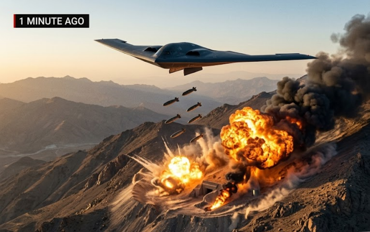 In a devastating precision strike that happened just one minute ago, a US B-2 Spirit stealth bomber has completely destroyed Iran’s most secretive underground uranium enrichment tunnel. The mᴀssive explosion has collapsed the heavily fortified facility deep beneath the mountains, dealing what may be a fatal blow to Iran’s nuclear weapons program.