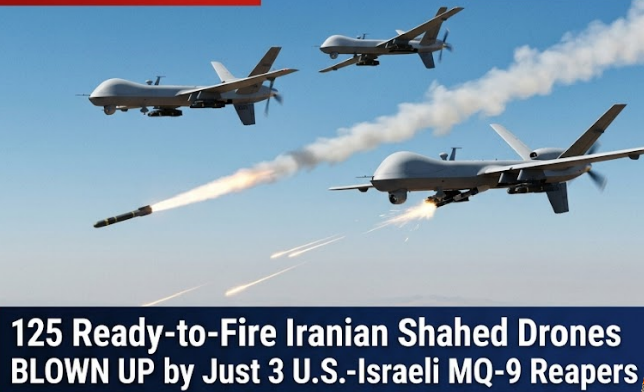 In a stunning display of aerial dominance on day 42 of the 2026 US-Iran war, just three MQ-9 Reaper drones operating in a joint U.S.-Israeli mission completely destroyed 125 Iranian Shahed drones that were armed and ready for launch.