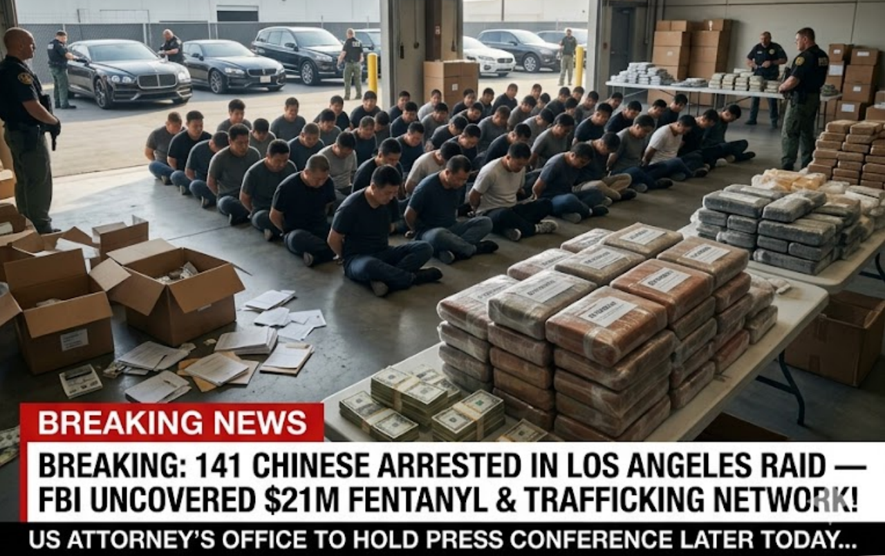 In a stunning early-morning operation that has sent tremors through America’s underworld, the FBI has arrested 141 Chinese nationals in one of the largest raids in Los Angeles history. Agents dismantled a sophisticated, multi-million-dollar fentanyl manufacturing and distribution network blamed for flooding U.S. streets with ᴅᴇᴀᴅly poison.