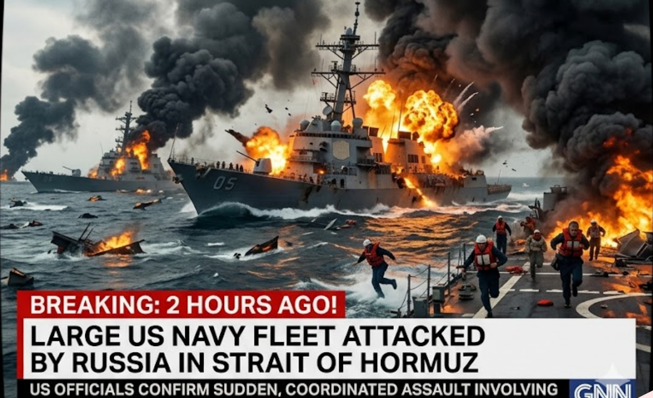 In a reckless and extremely dangerous escalation, Russian forces attacked a large U.S. Navy fleet as it entered the Strait of Hormuz two hours ago. Multiple Russian aircraft and surface vessels launched coordinated strikes using anti-ship missiles against American warships supporting operations to secure the critical waterway.
