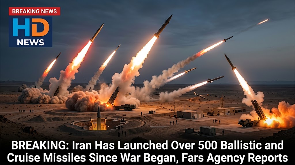 BREAKING: Iran Has Launched Over 500 Ballistic and Cruise Missiles Since War Began, Fars Agency Reports
