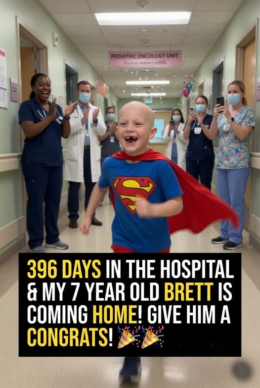 They told him, “You’re going home today,” and in that moment, everything changed. After 396 days inside hospital walls, Brett didn’t slowly walk out or look back one last time. He ran. He ran down the same hallway that had been his entire world for more than a year, a place filled with machines, treatments, and nights that felt far too long for any child. That hallway had witnessed his pain, his fear, and the quiet moments when hope felt uncertain, but on this day, it witnessed something else entirely—freedom.