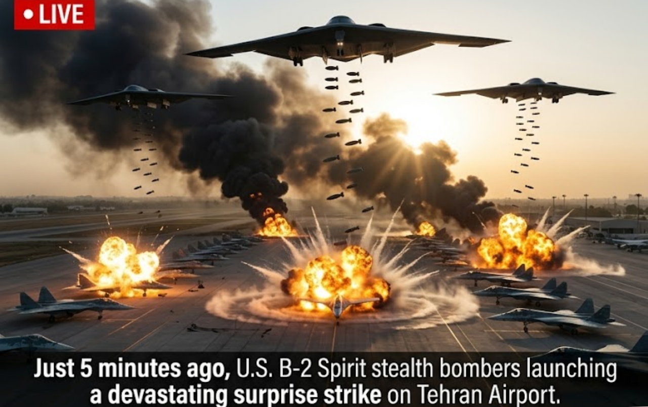 The elite B-2s penetrated deep into Iranian airspace undetected and unleashed a devastating barrage of precision-guided munitions. The entire fleet — Iran’s most advanced fighter aircraft, supplied and supported by Russia — was caught on the ground and obliterated in a series of apocalyptic explosions. The airport is now a smoldering graveyard of twisted metal and burning wreckage.