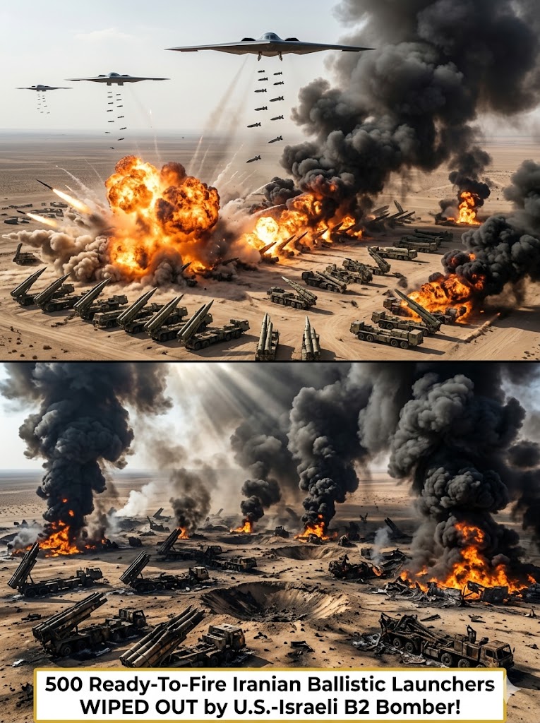 In a crushing display of long-range stealth power, a joint squadron of American and Israeli B-2 Spirit bombers has completely destroyed 500 ready-to-fire Iranian ballistic missile launchers in a single devastating operation deep inside Iran.