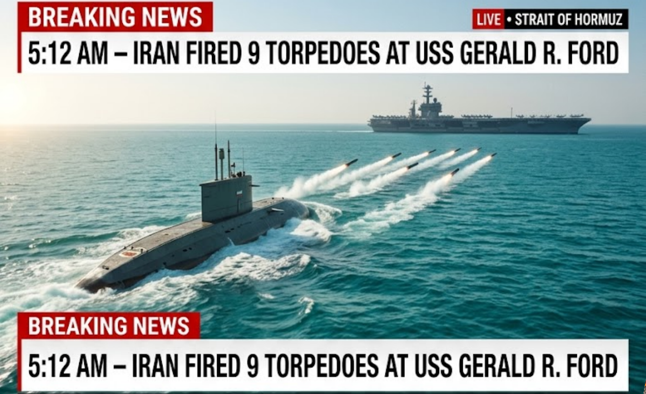At exactly 5:12 AM local time, an Iranian submarine fired a full salvo of advanced heavyweight torpedoes in what U.S. officials described as a “coordinated and highly aggressive” attempt to cripple the carrier. The Ford’s escort destroyers and anti-submarine helicopters immediately responded with intense defensive measures, deploying countermeasures, decoys, and Mk-54 torpedoes to intercept the incoming threats.