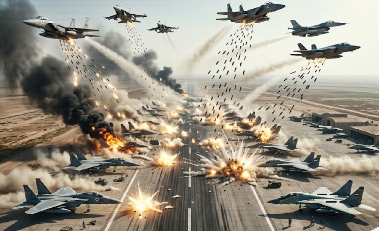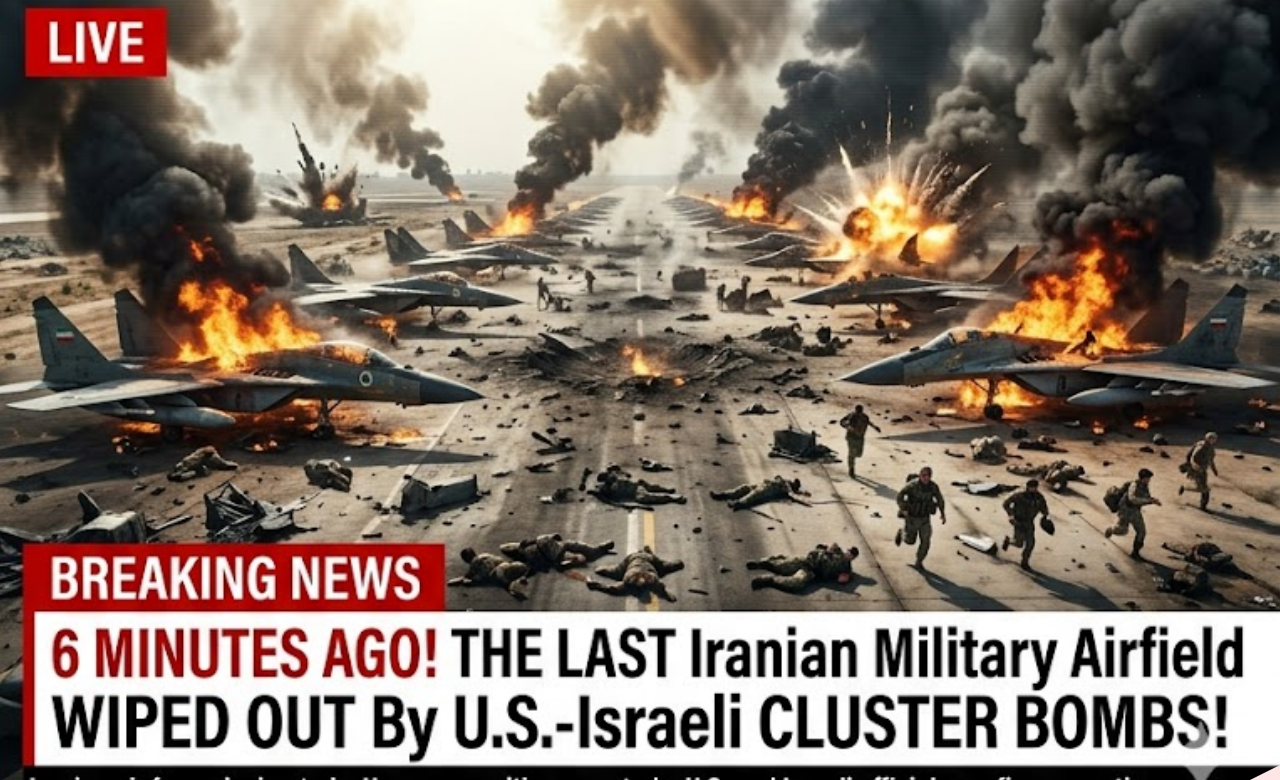 Bandar Abbas, Iran – Iran’s air force is finished. Just 6 minutes ago, U.S. B-52s and Israeli F-35s unleashed a hellstorm of cluster bombs on Tehran’s final operational military airfield, turning runways, hangars, and 40+ aircraft into a smoldering wasteland.