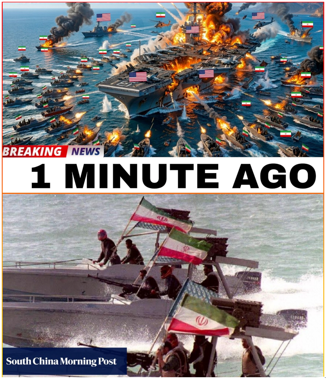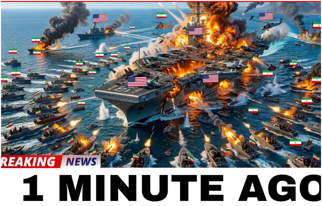In a desperate and suicidal move early this morning, Iran hurled 60 IRGC fast attack boats in a mᴀssive swarm directly at a U.S. Navy aircraft carrier strike group patrolling the Strait of Hormuz. The heavily armed vessels, loaded with missiles, rockets, and explosives, raced across the water in an all-out attempt to overwhelm American defenses and strike a symbolic blow against U.S. naval power.