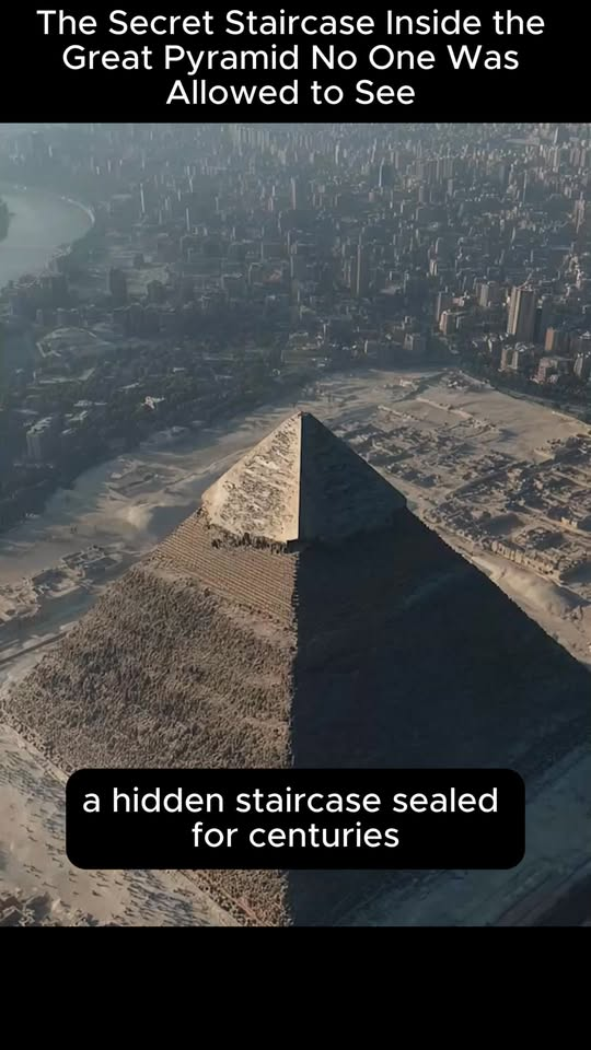 In the hazy light of dawn, the Great Pyramid of Giza stands like a silent monolith at the edge of the desert, a mountain of stone rising from the sands of time. For over four thousand years, it has guarded its secrets — chambers untouched, pᴀssages unseen, and beneath its heart, a hidden staircase sealed for centuries. Few dared to believe it existed, fewer still could imagine what it led to.