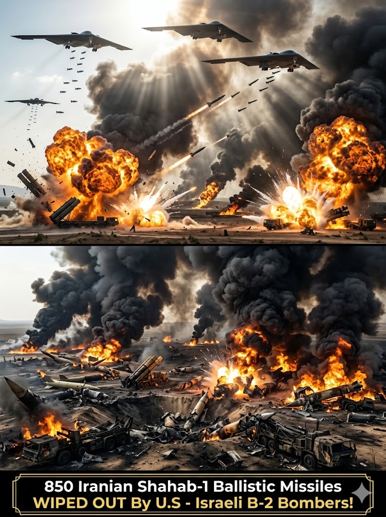 In a crushing display of air superiority, a joint squadron of American and Israeli B-2 Spirit stealth bombers has completely destroyed 850 Iranian Shahab-1 ballistic missiles in a single, devastating operation. The mᴀssive strike targeted multiple underground storage facilities and hardened bunkers where the regime had stockpiled its remaining medium-range ballistic missile arsenal.