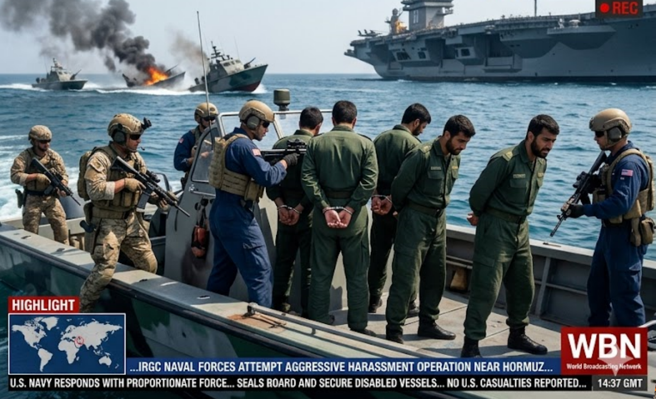 In a heart-stopping confrontation on day 47 of the 2026 US-Iran war, five Iranian Revolutionary Guard fast attack boats launched a desperate suicide run against a U.S. aircraft carrier strike group in the Strait of Hormuz — coming terrifyingly close to triggering a full-scale naval catastrophe.