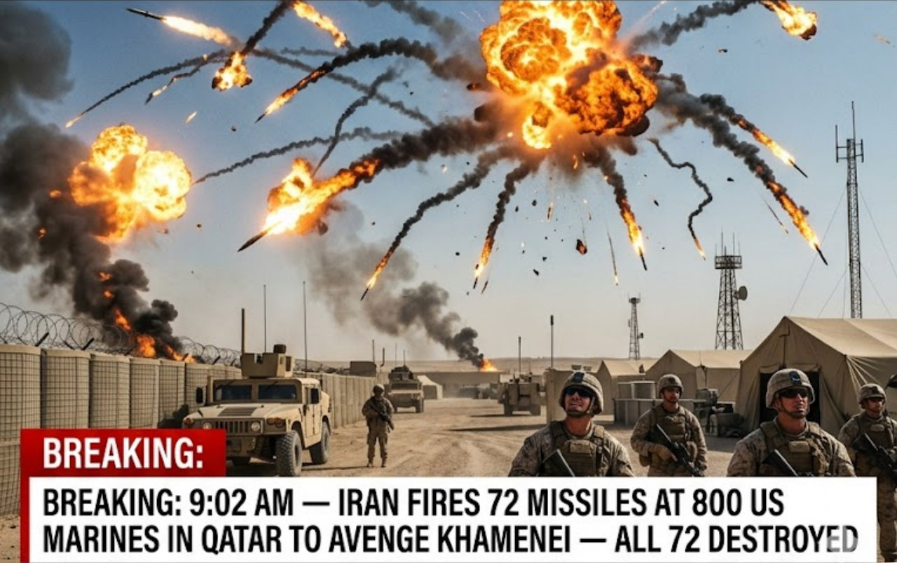 9:02 AM BREAKING: Iran Fires 72 Missiles at 800 US Marines in Qatar to Avenge Khamenei — ALL 72 Destroyed.lh
