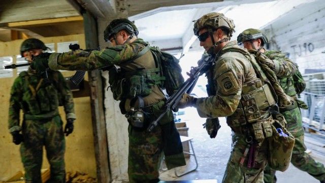 Flashbangs split the pre-dawn silence.