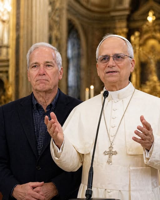 Pope Leo XIV sat beside his brother, John Joseph Prevost, both dressed simply, their expressions calm but unmistakably serious.