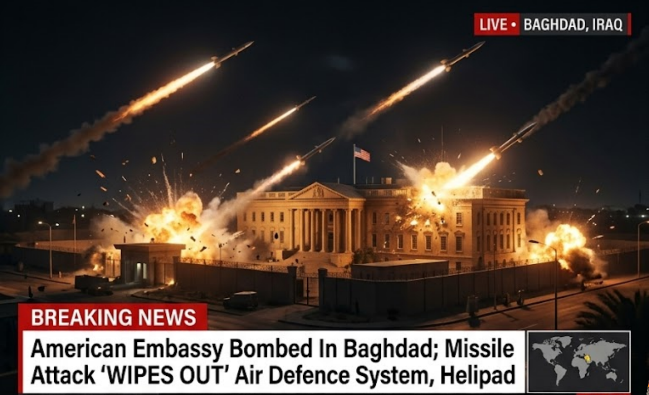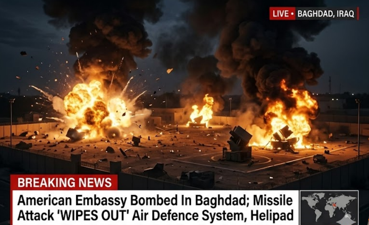 Baghdad, Iraq – In a brazen and highly provocative ᴀssault, Iran-aligned militias launched a direct missile strike on the heavily fortified U.S. Embᴀssy compound in Baghdad’s Green Zone, destroying a critical helipad and reportedly wiping out key sections of the embᴀssy’s air defense systems.