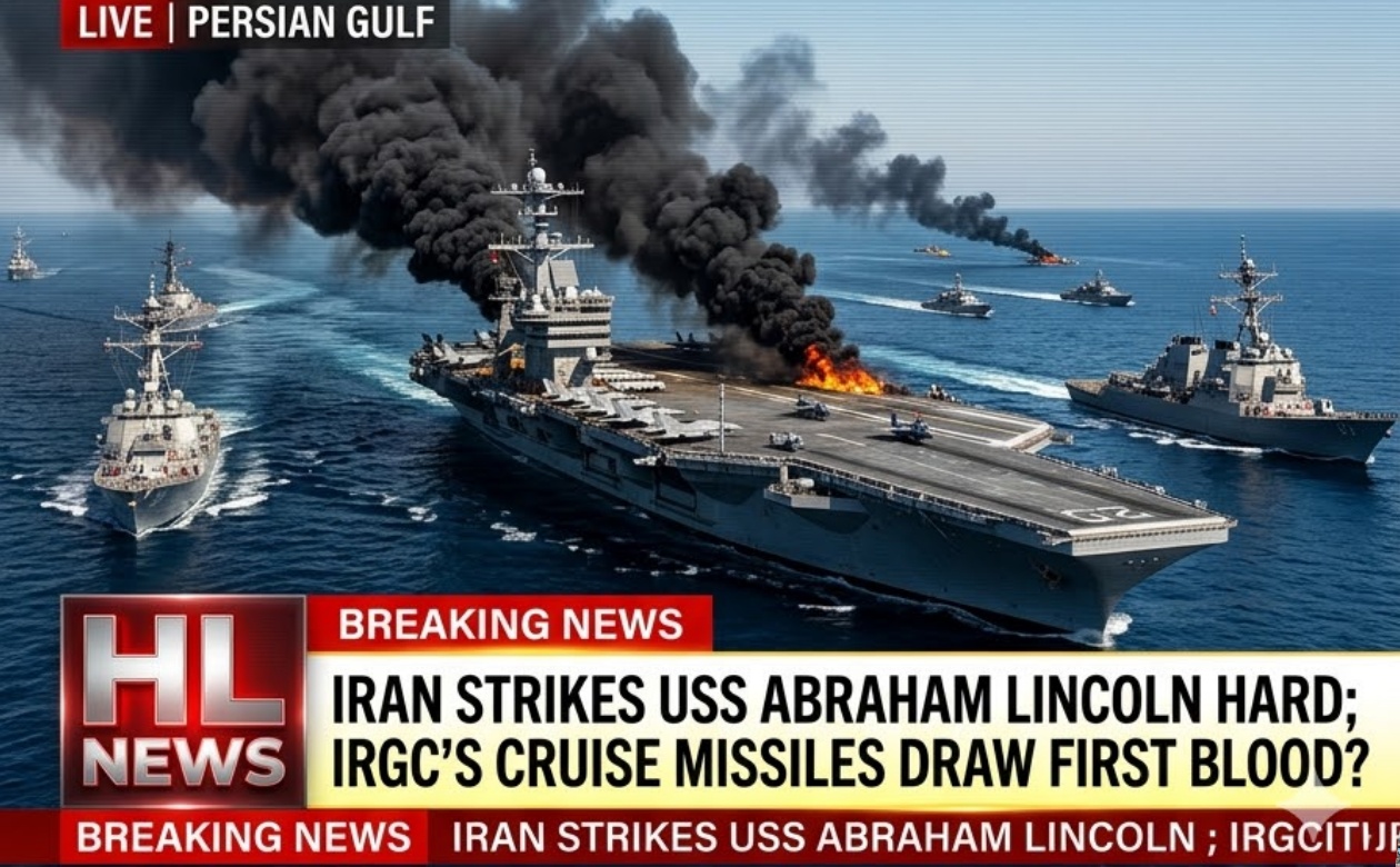 In a historic and humiliating blow to American naval supremacy, Iranian Revolutionary Guard Corps (IRGC) cruise missiles have struck the USS Abraham Lincoln, one of the U.S….