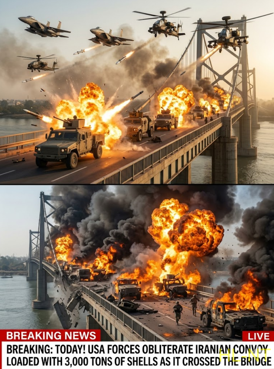 TODAY! USA FORCES OBLITERATE IRANIAN CONVOY LOADED WITH 3,000 TONS OF SHELLS AS IT CROSSED THE BRIDGE.lh
