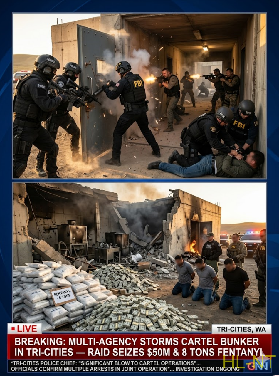 Tri-Cities, Washington – In a dramatic pre-dawn raid, FBI, DEA, ICE, and local SWAT teams stormed a heavily fortified underground cartel bunker in the Tri-Cities area, seizing $50 million in…