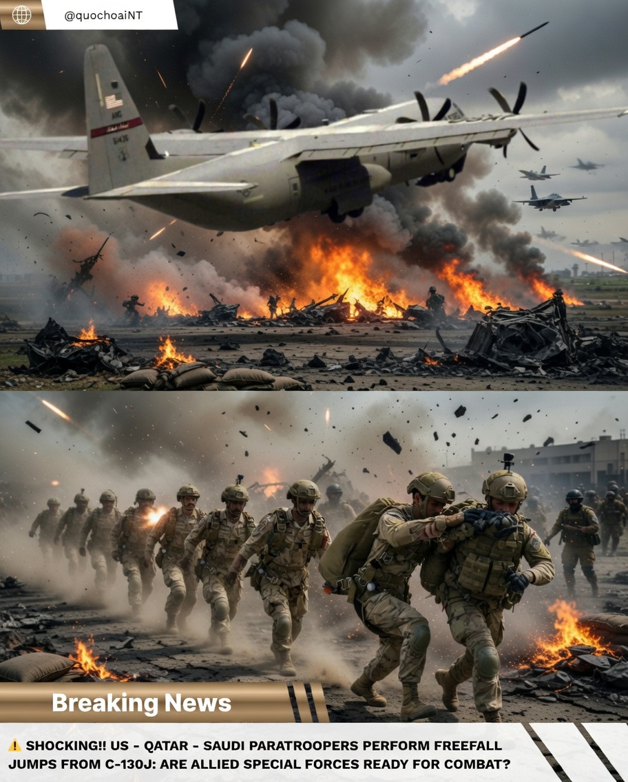 SHOCKING!! US – Qatar – Saudi Paratroopers Perform Freefall Jumps from C-130J: Are Allied Special Forces Ready for Combat?