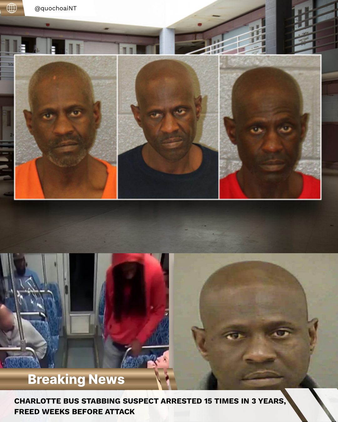 Charlotte bus stabbing suspect arrested 15 times in 3 years, freed weeks before attack