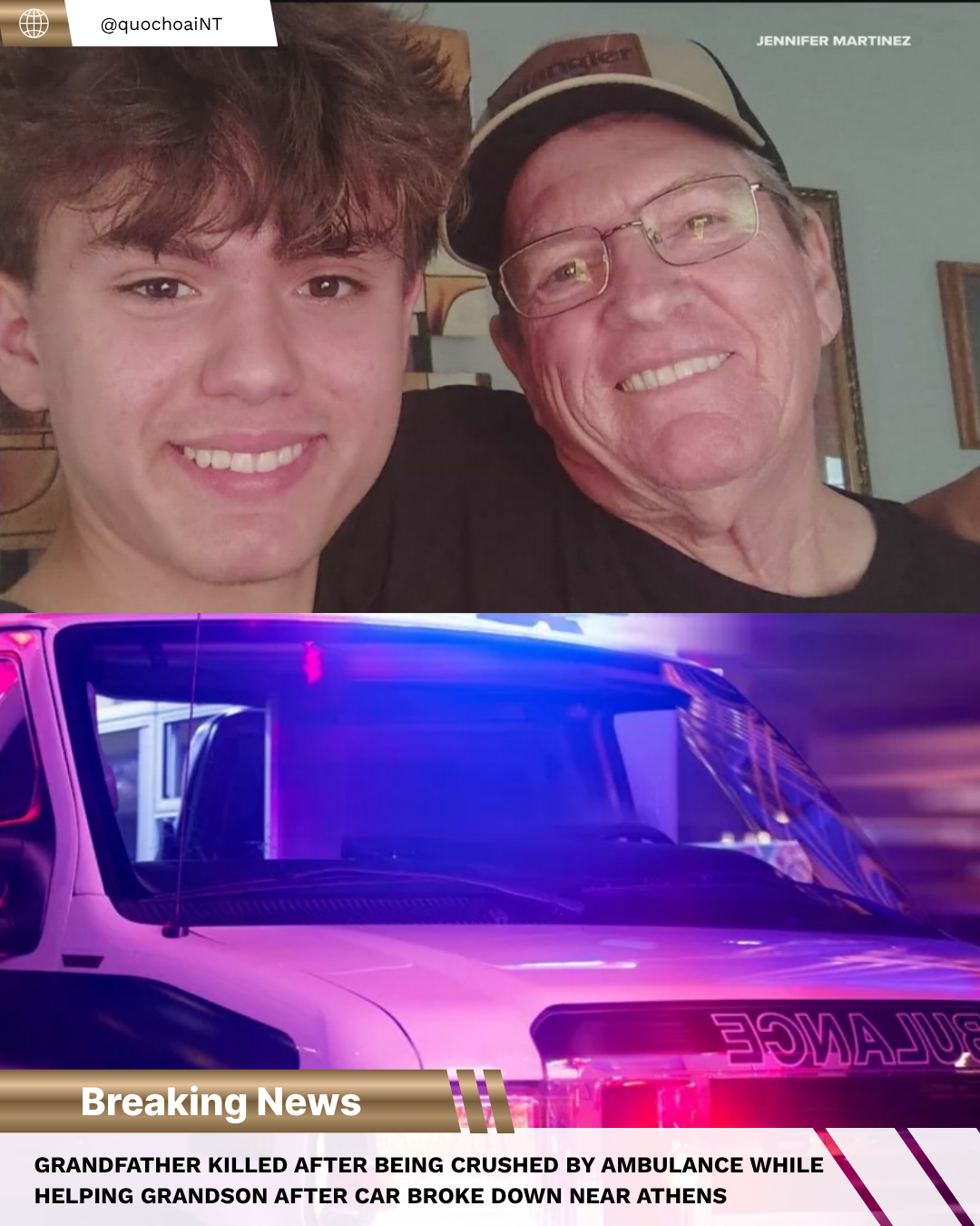Grandfather killed after being crushed by ambulance while helping grandson after car broke down near Athens