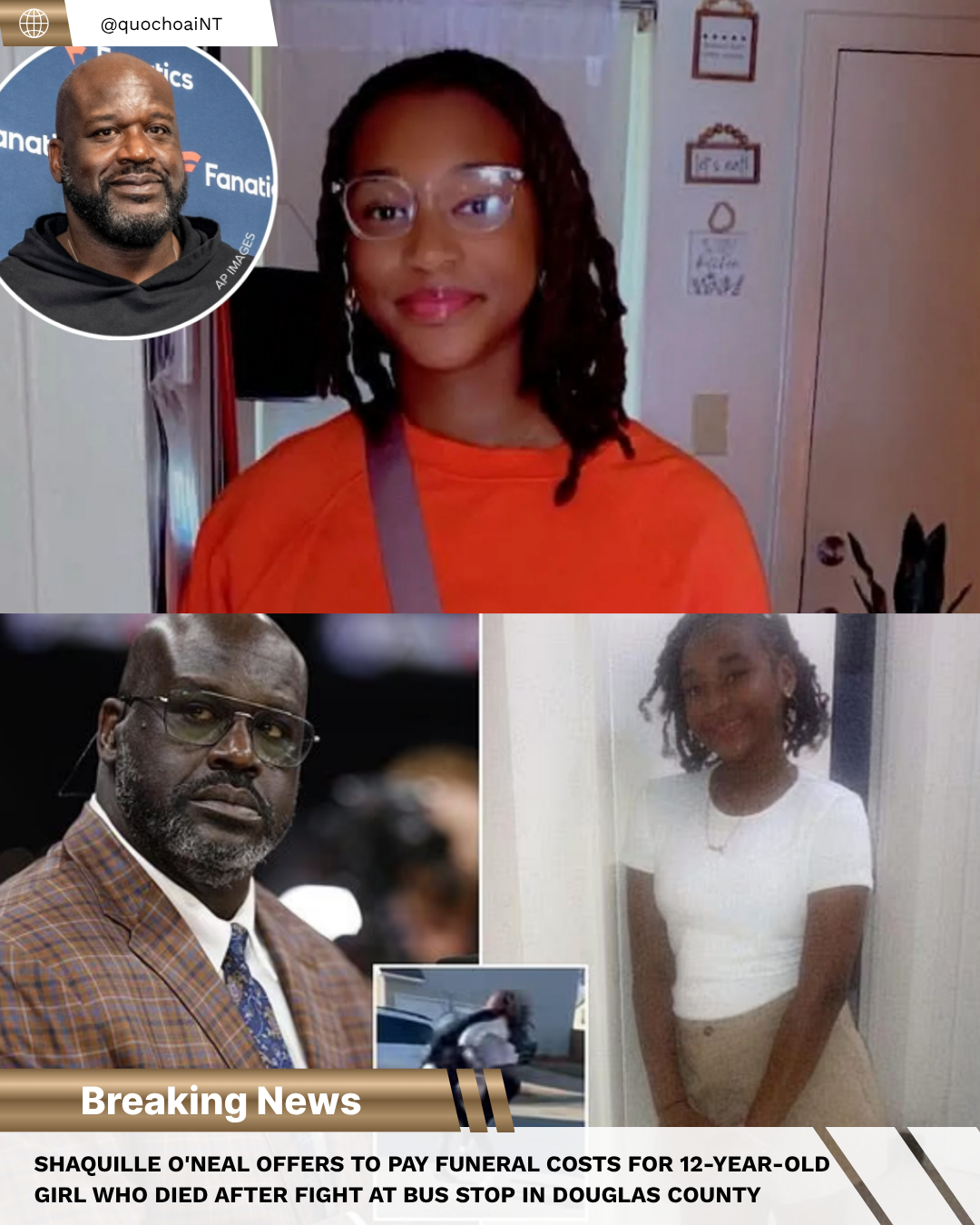 Shaquille O’Neal offers to pay funeral costs for 12-year-old girl who died after fight at bus stop in Douglas County