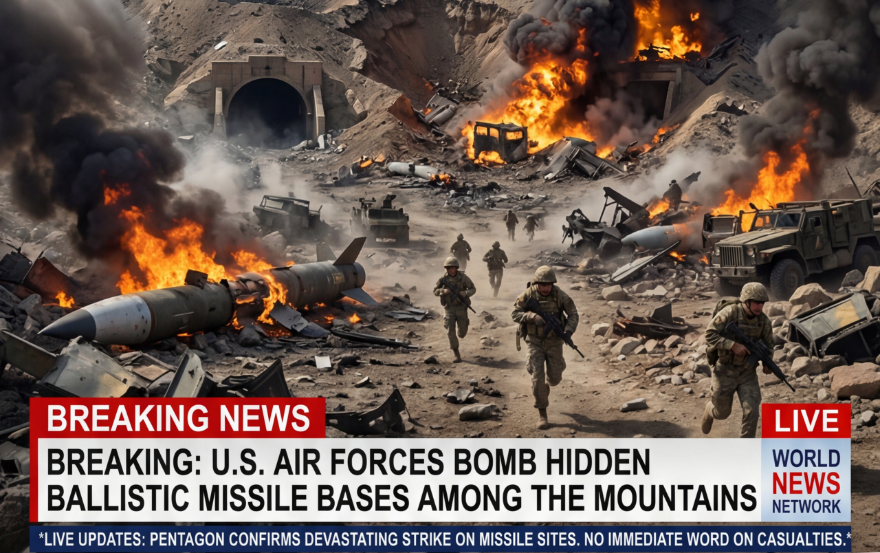 In a powerful precision operation, the US Air Force has completely destroyed multiple ballistic missile bases secretly hidden deep within Iran’s mountainous regions. B-1B Lancer and F-35 Lightning II aircraft delivered devastating strikes on these concealed facilities, collapsing reinforced underground silos, command centers, and launch pads buried inside the rugged terrain.