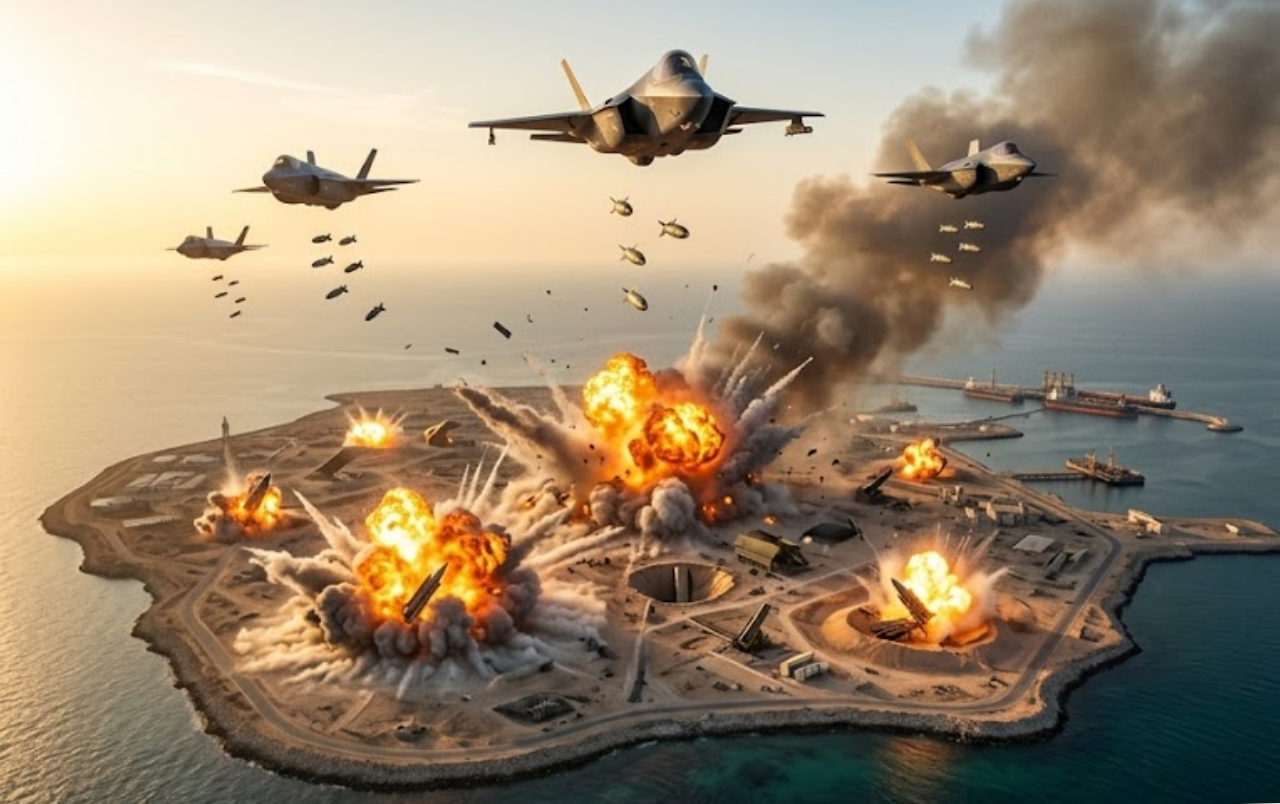 The operation, carried out with advanced stealth aircraft and precision-guided munitions, obliterated the heavily fortified missile batteries, launchers, and underground command centers that Iran was using to threaten international shipping through the Strait of Hormuz. Mᴀssive explosions ripped through the island as the entire missile infrastructure was turned into rubble and flames.