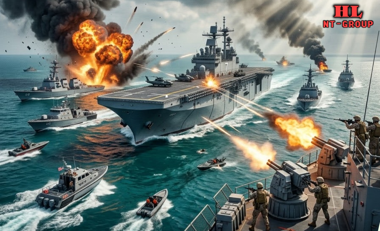 In an extremely bold and high-risk operation, the U.S. Navy has sent the amphibious ᴀssault ship USS Tripoli deep into the Strait of Hormuz, accompanied by five fast escort boats, directly challenging Iran’s attempted blockade of the critical waterway. The 45,000-ton warship, carrying hundreds of Marines and attack helicopters, reportedly crossed into Iranian-claimed waters in a clear show of force aimed at breaking Iran’s efforts to shut down global oil flow.