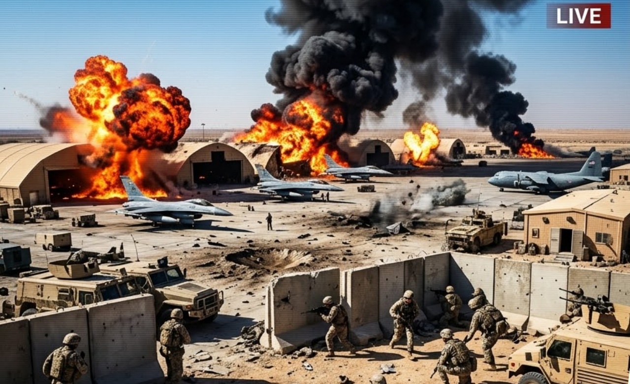In a dramatic new wave of aggression, Iran’s Islamic Revolutionary Guard Corps (IRGC) has launched fresh attacks on multiple U.S. military bases across the Middle East, openly declaring that the “final victory” is near. Explosions rocked American installations in Iraq, Syria, and the Gulf, with Iranian drones and missiles striking logistics hubs and airfields. Several bases reported significant damage, fires, and casualties as U.S. forces scrambled to respond.