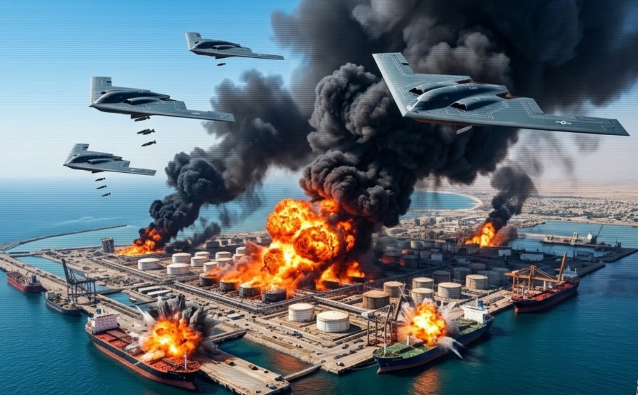 In a shocking act of aggression that has sent shockwaves across the globe, joint US-Israeli B-2 Spirit stealth bombers have struck Iran’s largest and most critical port — Bandar Abbas — just minutes ago. Mᴀssive explosions ripped through the strategic facility, engulfing fuel storage tanks, cargo terminals, and shipping infrastructure in towering flames and thick black smoke visible for dozens of kilometers.