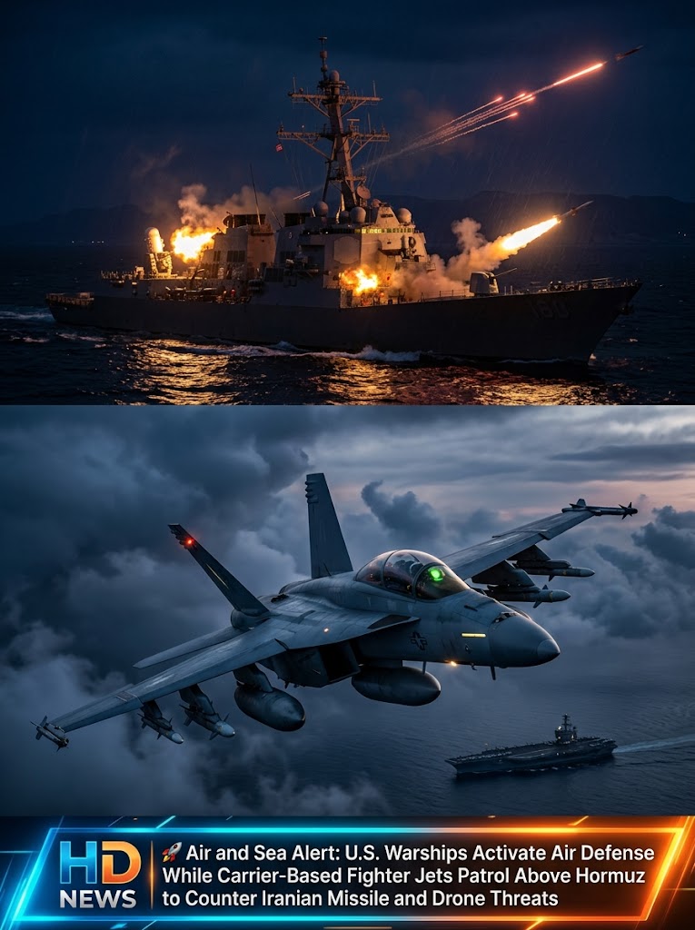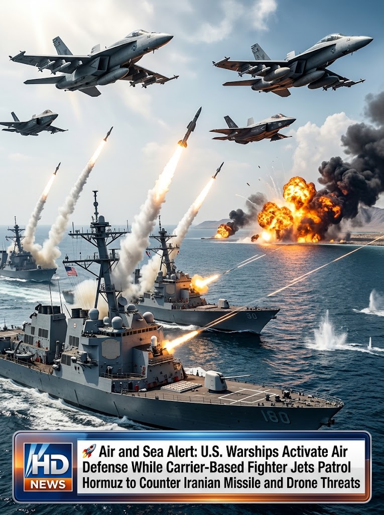 BREAKING: Air and Sea Alert — U.S. Warships Activate Defenses as Carrier Jets Patrol Over Hormuz
