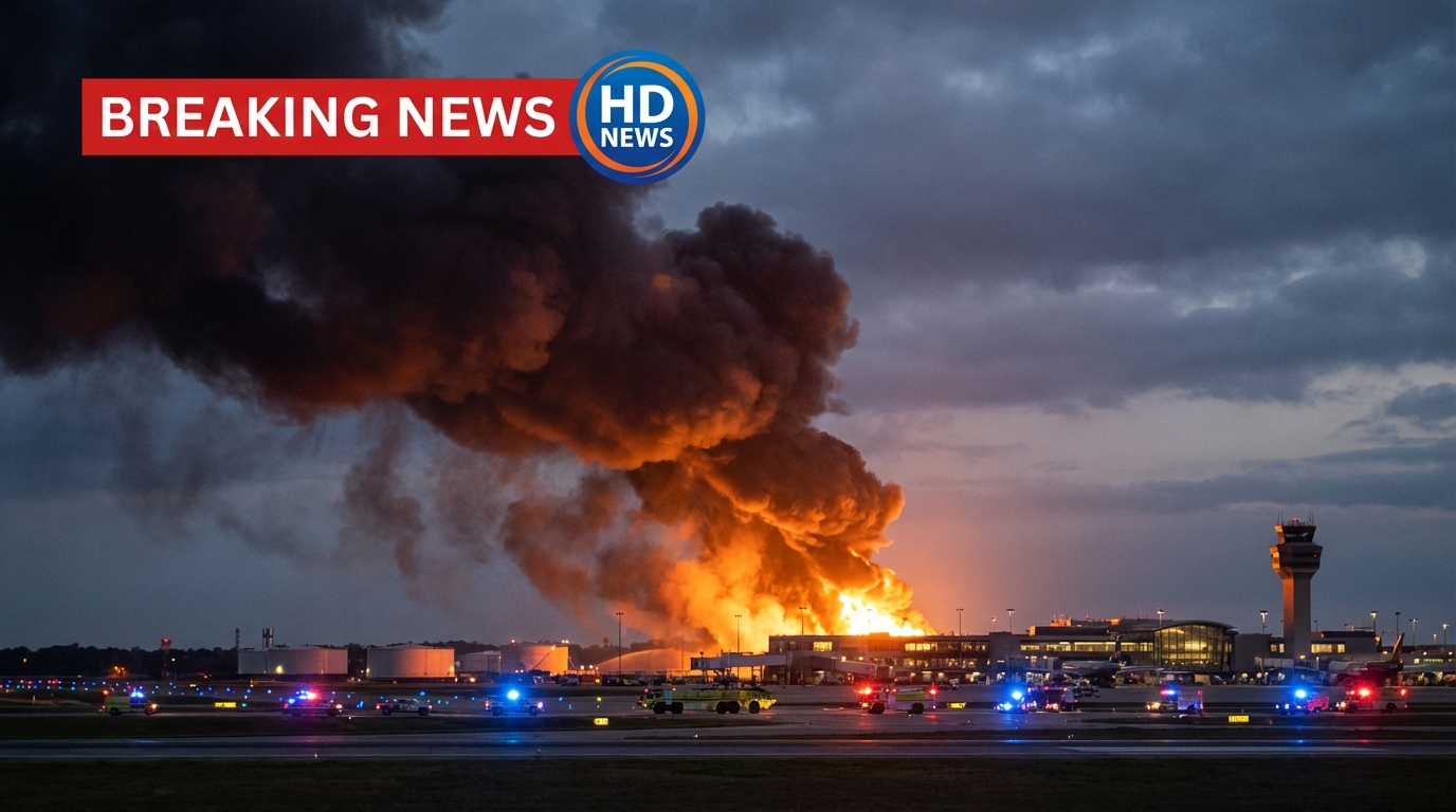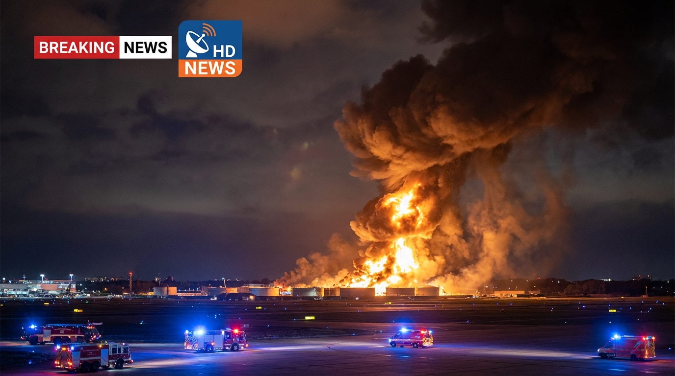 According to official statements, at least two fuel tanks were hit, causing a significant blaze inside the airport’s fueling complex. Emergency crews responded rapidly, deploying firefighting units to contain the fire and secure the area.