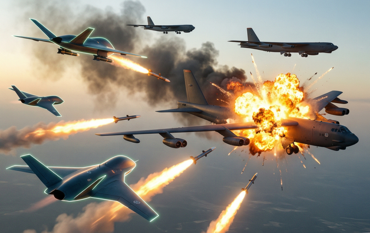 In a jaw-dropping escalation that has stunned military analysts worldwide, Iranian forces have reportedly unleashed a swarm of revolutionary “invisible” drones to shoot down multiple U.S. B-52 Stratofortress bombers. The strike, described by regional sources as a masterclass in asymmetric warfare, exposes critical vulnerabilities in America’s once-dominant air power and sends a clear message. The era of unchallenged Western supremacy in the skies may be ending.