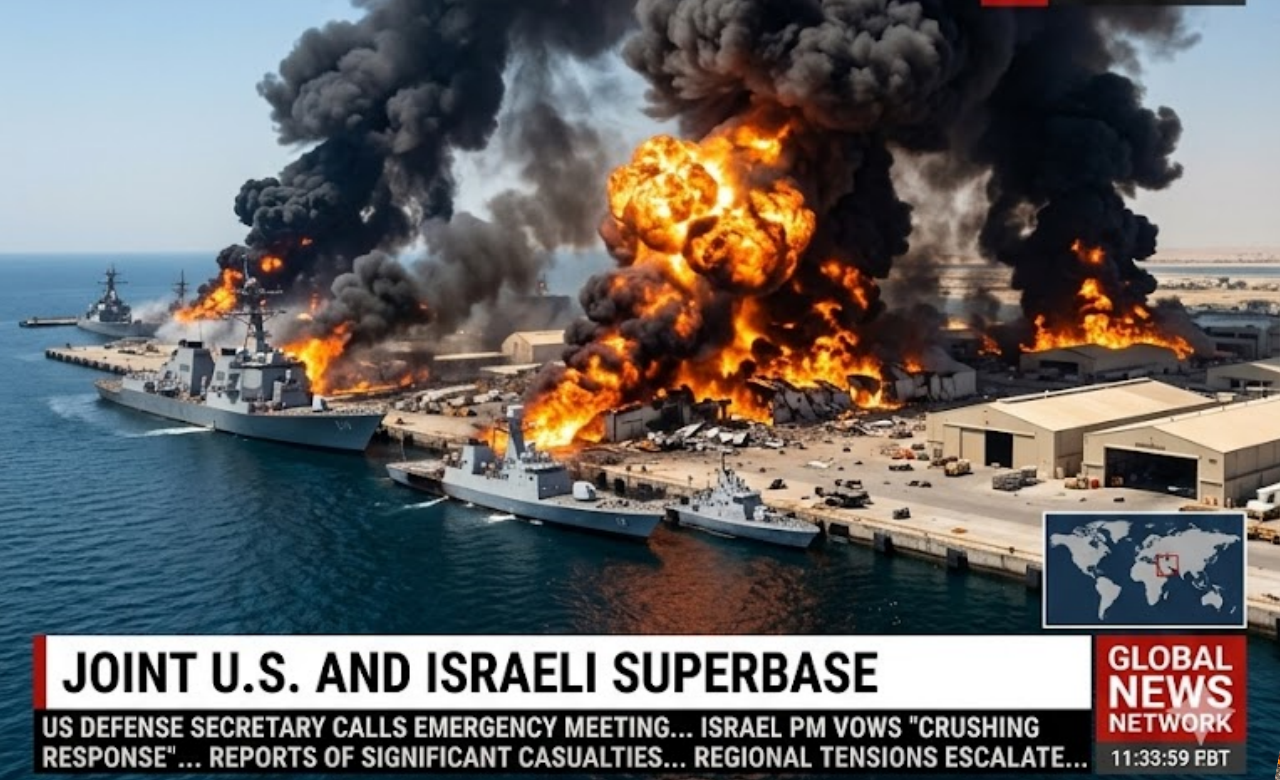 In a shocking display of air power and precision on day 18 of the 2026 Iran war, Iranian fighter jets have carried out a devastating surprise strike on a major joint U.S.-Israeli naval superbase in the Persian Gulf, leaving the facility engulfed in a raging sea of fire.