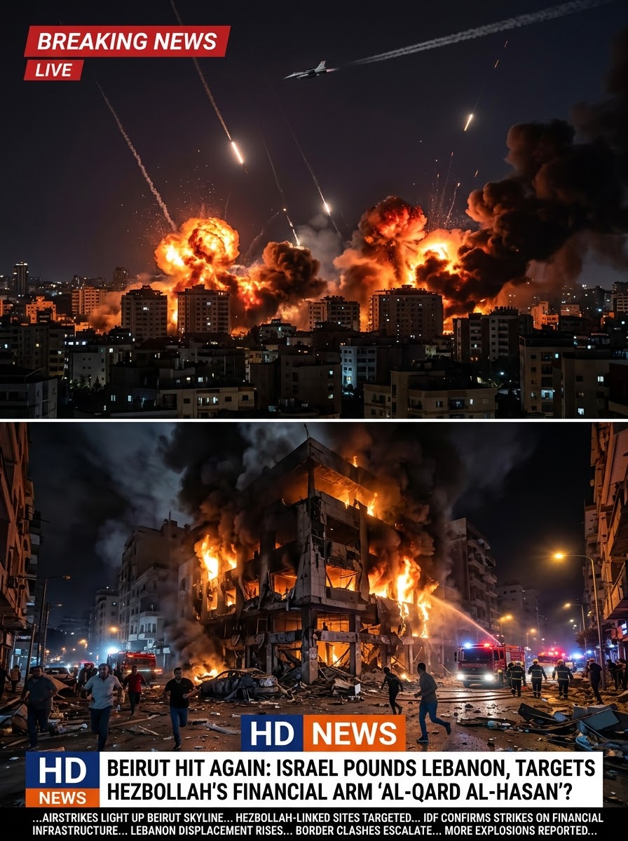 Goo evening. A new surge of violence is shaking the region tonight as Israeli airstrikes once again strike Beirut, dramatically escalating tensions between Israel and Lebanon. Multiple explosions illuminated the city’s skyline as warplanes targeted sites believed to be connected to Hezbollah’s financial structure, including the controversial organization Al-Qard Al-Hasan.
