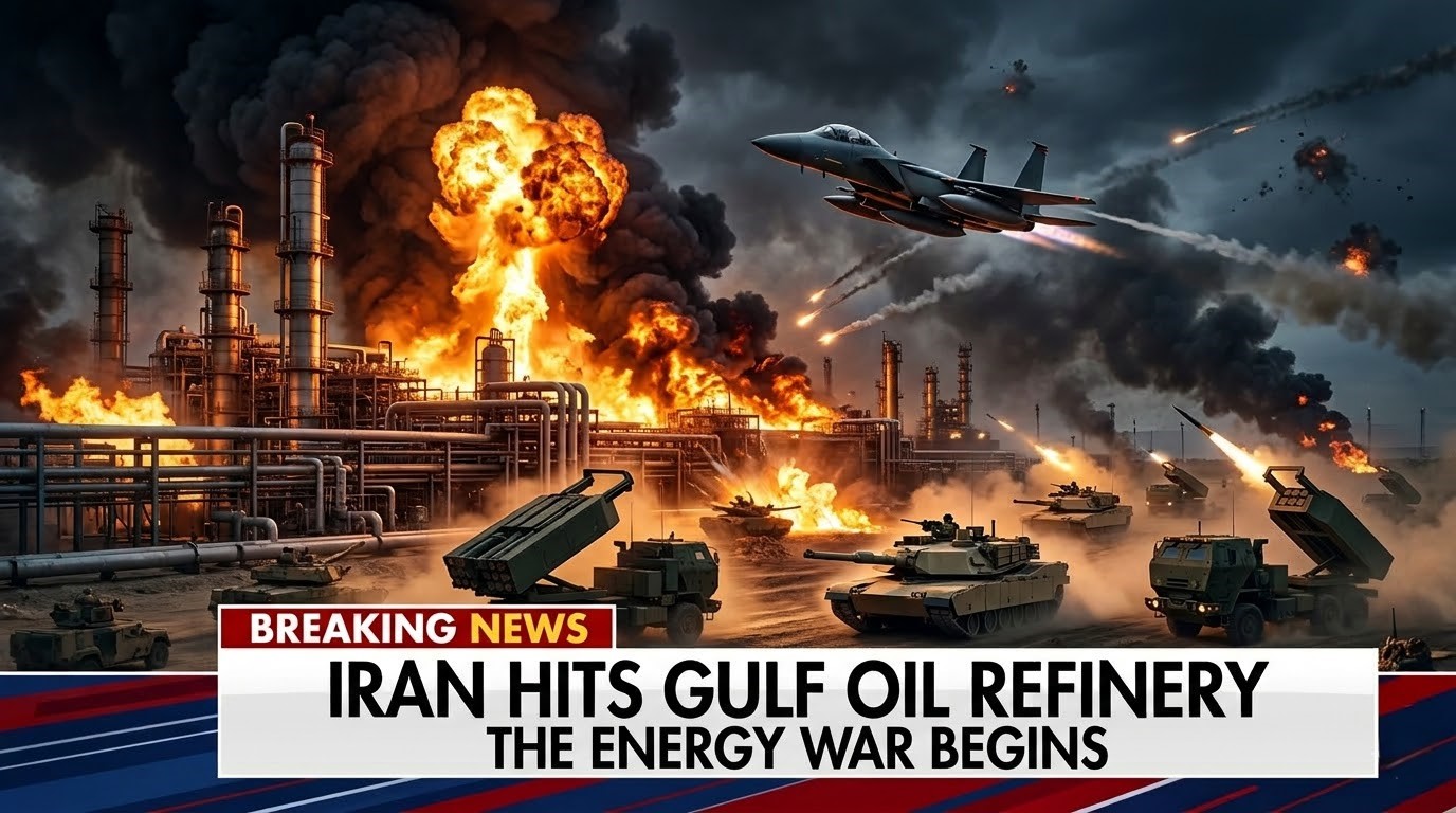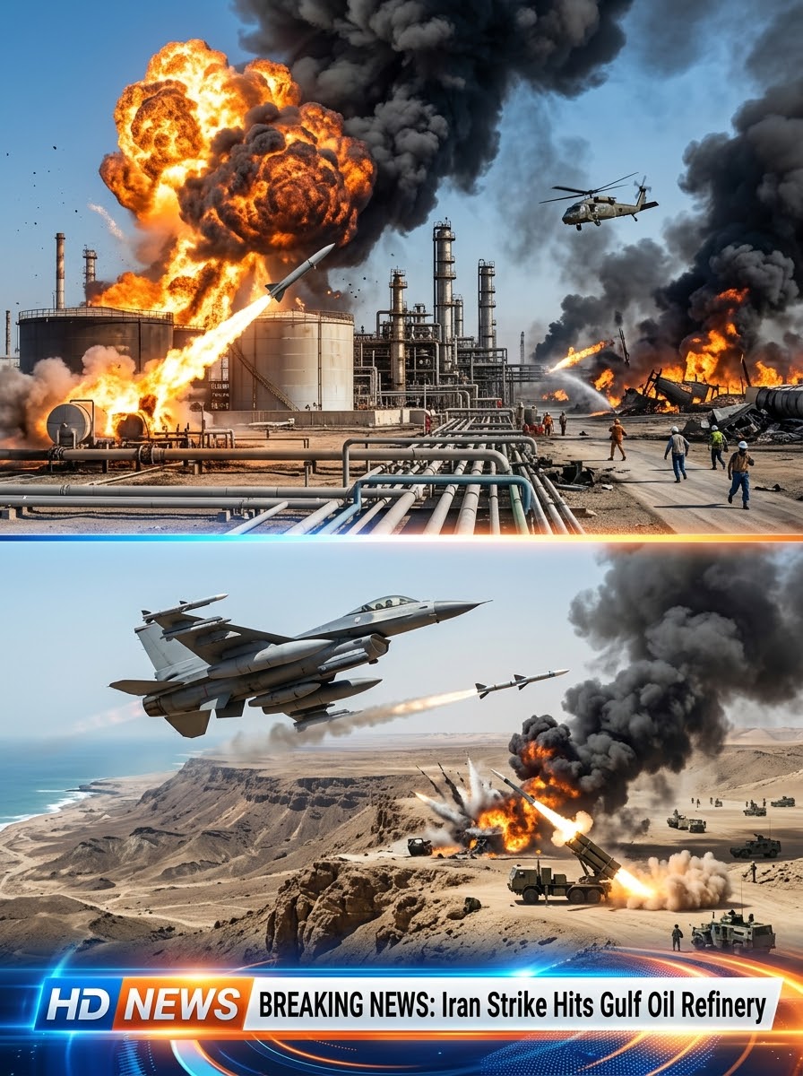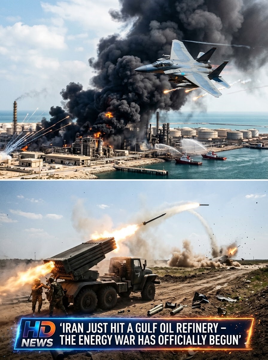 A major oil refinery in the Gulf region has reportedly been struck, sending immediate shockwaves through global energy markets and raising fears of a widening “energy war.” Early footage and local reports show large fires and thick black smoke rising from the facility, as emergency crews rush to contain the damage.