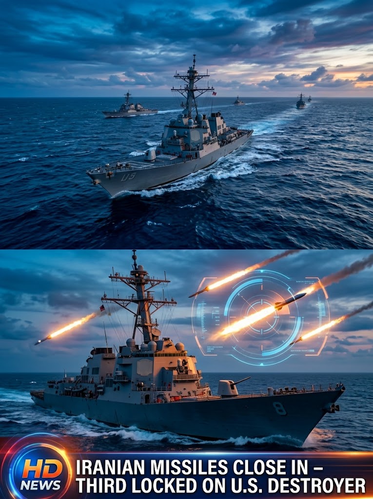 A high-stakes naval confrontation is unfolding as multiple Iranian missiles reportedly closed in on a U.S. Navy destroyer operating in tense regional waters. In a dramatic escalation, a third missile is said to have successfully locked onto the vessel, raising fears of an imminent strike.