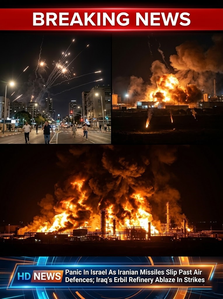 Tensions across the Middle East have intensified after reports that Iranian missiles managed to slip past parts of Israel’s air-defense network, triggering alarms and panic in several areas. At the same time, a separate strike has set an oil facility ablaze in northern Iraq, raising fears that the conflict is spreading further across the region.