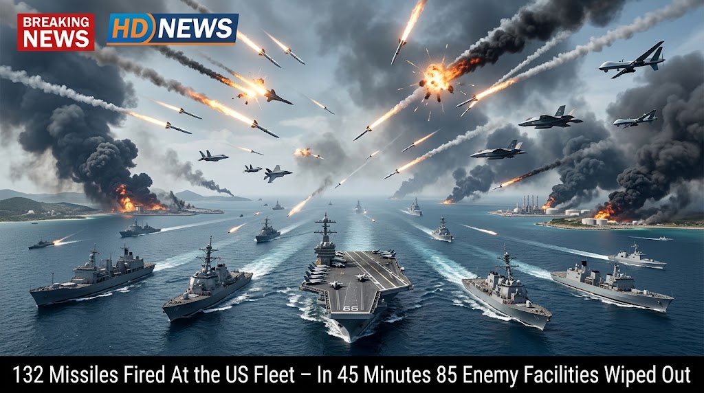 According to early reports, more than 100 missiles were fired in a coordinated wave aimed at overwhelming defenses of a United States Navy fleet in the region. Advanced radar and interception systems were immediately activated, with multiple missiles destroyed mid-air before reaching their targets.