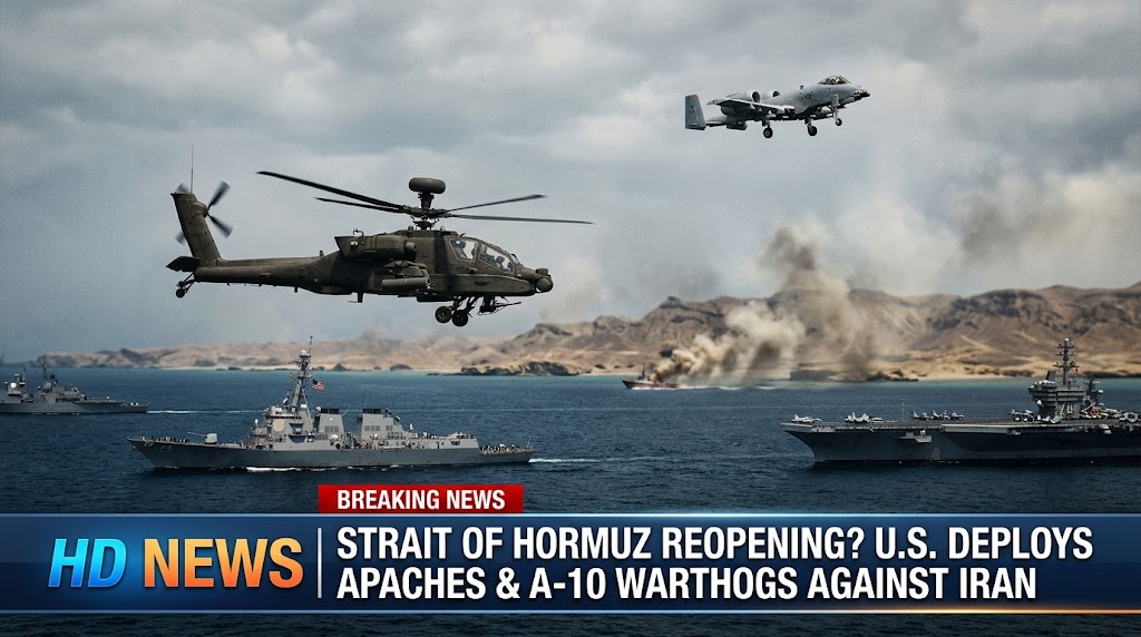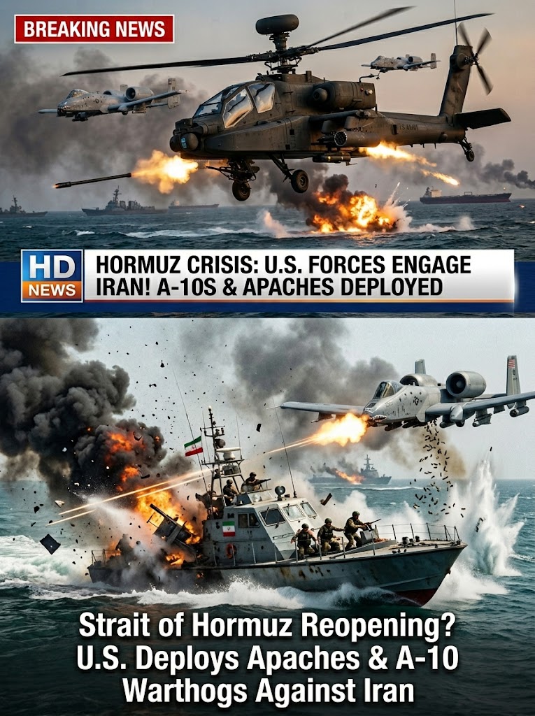 U.S. forces have deployed AH-64 Apache helicopters and A-10 Warthog attack aircraft, specifically targeting Iranian fast-attack boats, drones, and mine-laying operations threatening the waterway.