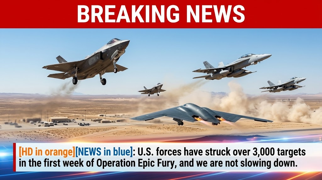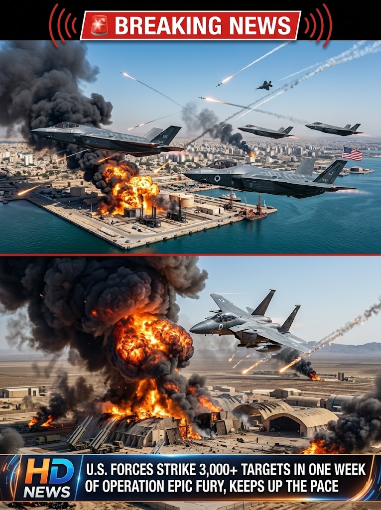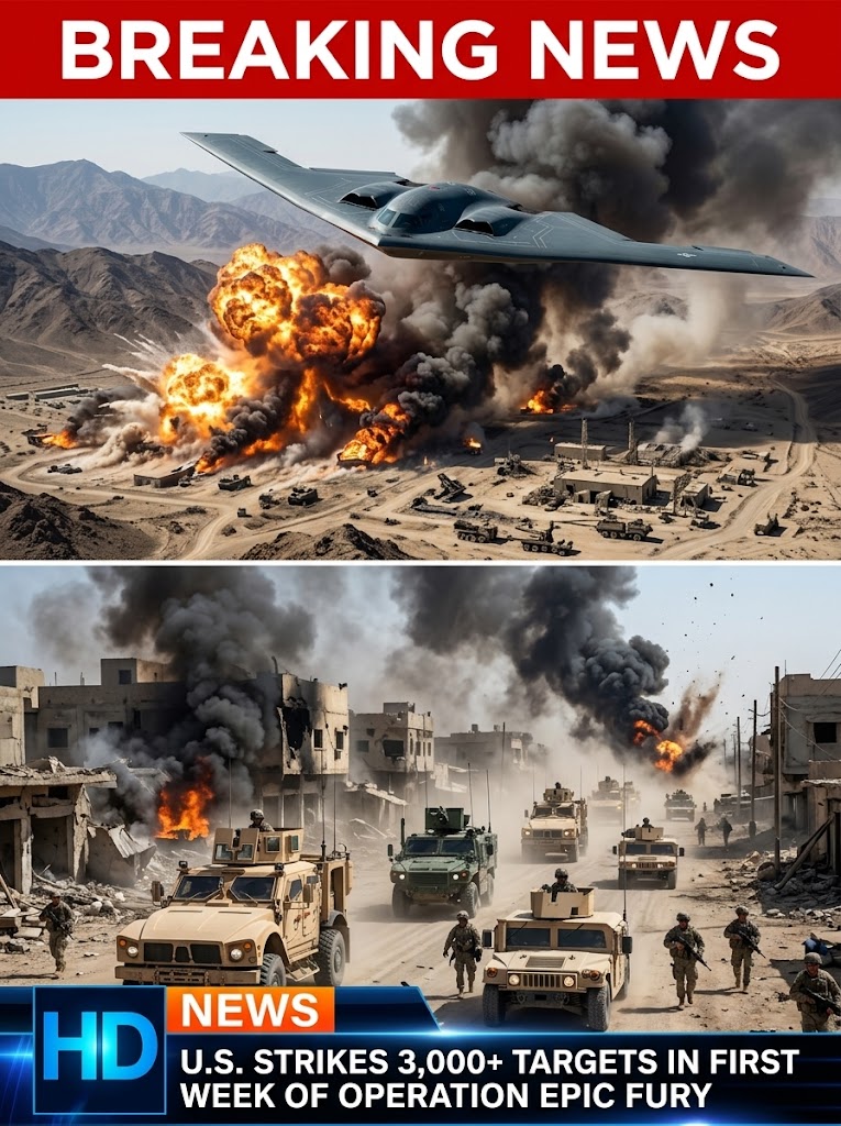 U.S. forces have carried out more than 3,000 strikes against military targets during the first week of Operation Epic Fury, marking one of the most intense military campaigns in the region in recent years. Fighter jets, bombers, drones, naval missiles, and long-range rocket systems have been used to target missile launch sites, radar installations, military command centers, weapons depots, and strategic infrastructure linked to Iranian military operations.