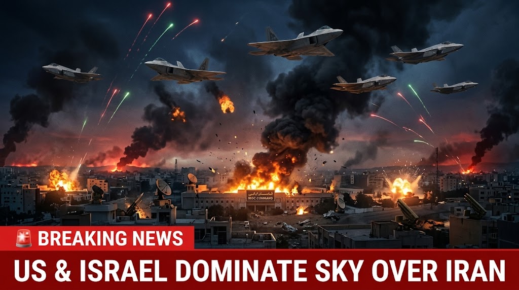 The United States and Israel continue to carry out coordinated air operations across Iranian airspace as part of the expanding Operation Epic Fury campaign. Advanced fighter jets, stealth aircraft, long-range bombers, and surveillance platforms are conducting continuous missions targeting missile facilities, military command centers, radar stations, and key defense infrastructure. Military sources report that the scale and tempo of the strikes have allowed allied forces to maintain strong control of the air domain.
