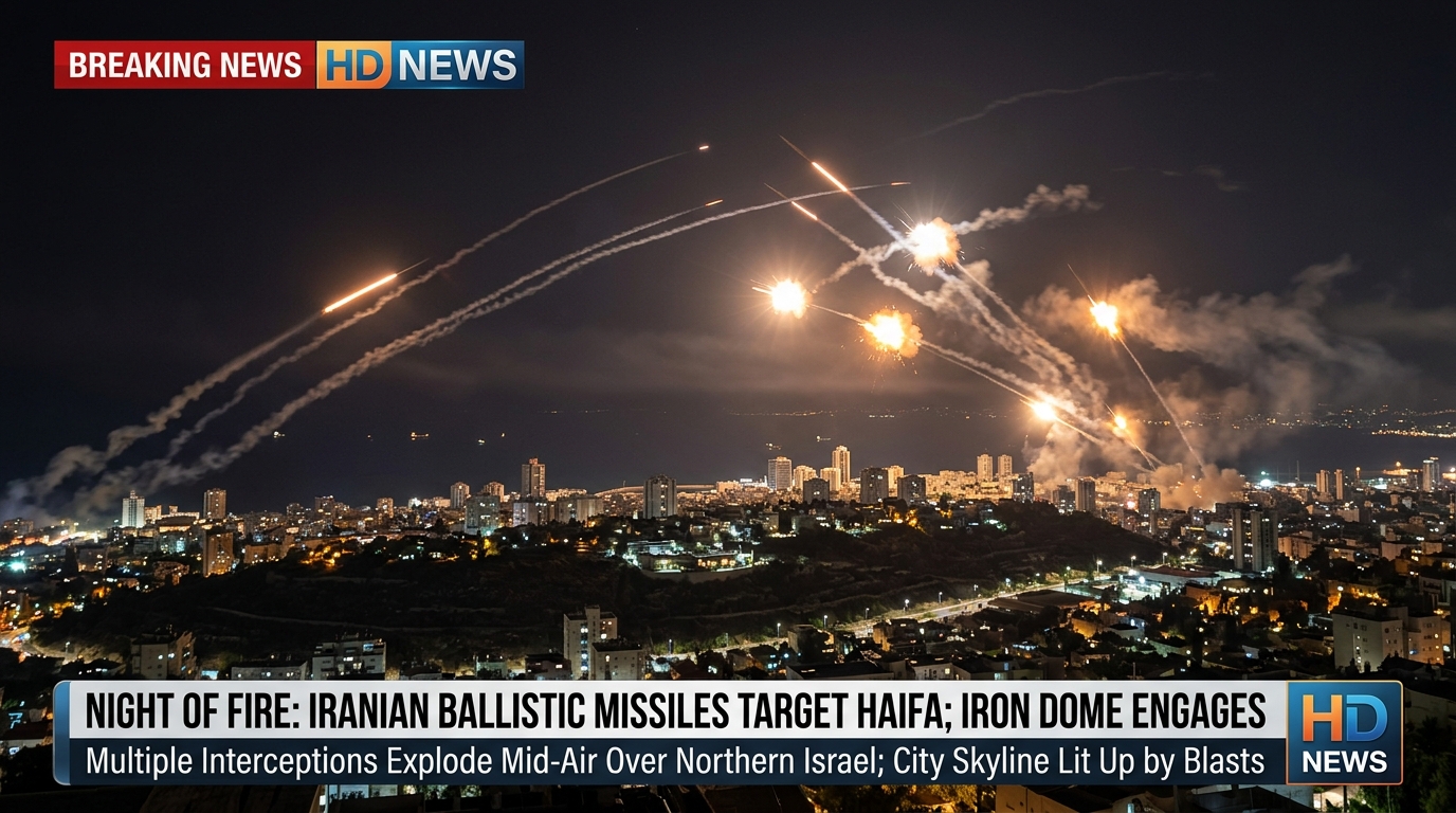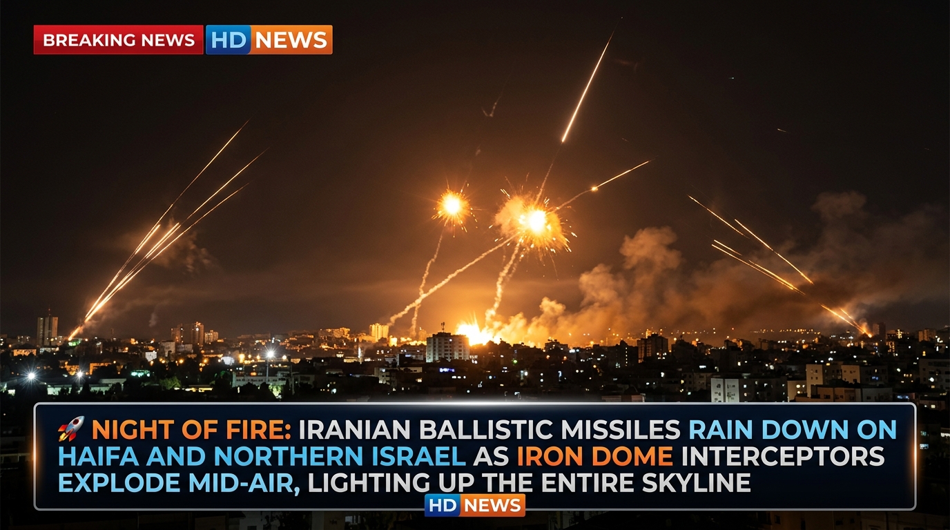 A new wave of missile attacks has struck the northern Israeli city of Haifa, turning the night sky into a continuous sequence of fire trails, interceptions, and explosions. The barrage unfolded in multiple phases, with incoming projectiles detected and engaged by air defense systems as sirens echoed across the region.