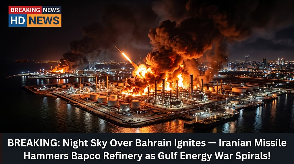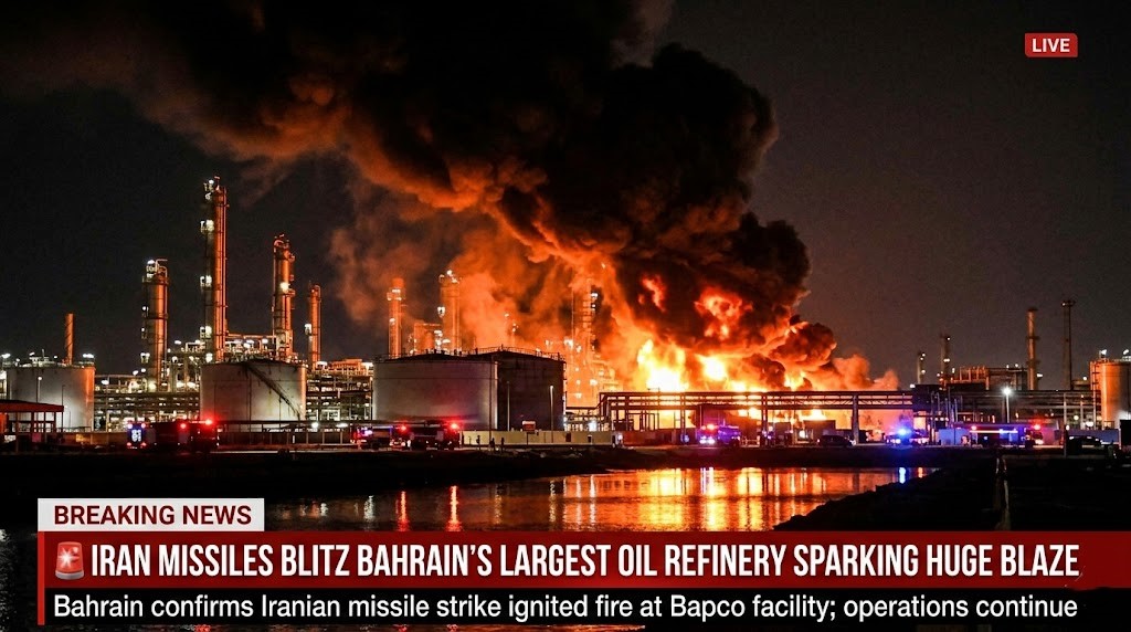 A dramatic escalation in the Gulf has unfolded overnight as Iran reportedly launched a missile strike on the Bapco oil refinery in Bahrain, sending the night sky ablaze and fueling fears of a broader energy war across the region.