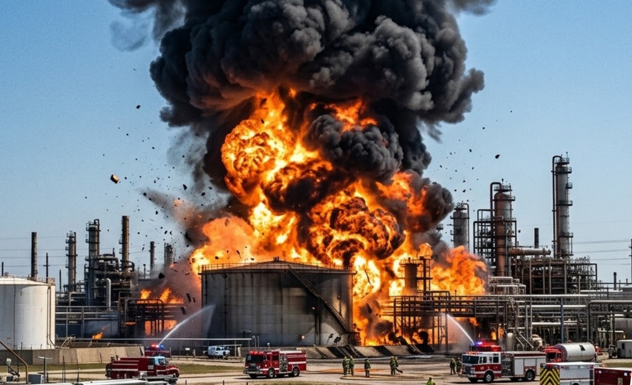 A mᴀssive explosion rocked a major oil refinery in Texas early this morning, sending towering flames and thick black smoke into the sky. The blast occurred at a key facility in the Houston area, one of the largest refining hubs in the United States. Local authorities have confirmed multiple injuries and are actively searching for missing workers as firefighters battle to contain the raging inferno.